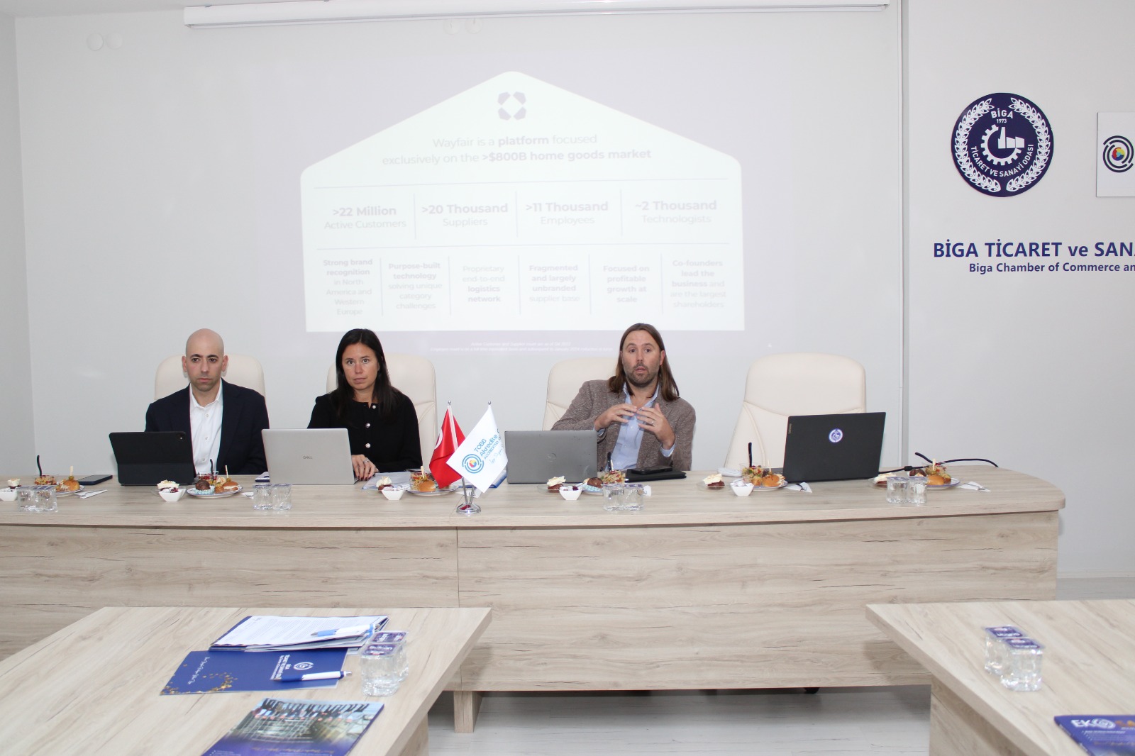 Türkiye'de de ofis açmayı düşünen Wayfair'in, Ticaret Bakanlığı'nın girişimleriyle Türkiye pazarında birtakım görüşmeler gerçekleştirmeye başladı. ABD merkezli e-ticaret devi Wayfair Başkan Yardımcısı Ryan Fitzpatrick, Kategori Yöneticisi Devin Zandonella, Kamu İlişkileri Direktörü Evan Friedler, Biga Ticaret ve Sanayi Odasında gerçekleştirilen toplantı için Biga’daydılar. Ticaret Bakanlığı’nın organizasyonunda ve Biga Ticaret ve Sanayi Odası ev sahipliğinde Biga’daki mobilya sektör temsilcileri ile bir araya gelen Wayfair şirketi temsilcileri uluslararası işbirliği anlamında önemli bir görüşme gerçekleştirdiler. Toplantıya Biga Ticaret ve Sanayi Odası Başkanı Şadan Doğan ile Biga Ticaret ve Sanayi Odası Başkan Yardımcısı Sedat Çakır da katıldılar. Gerçekleştirilen B2B (iş geliştirme) toplantısında, Biga’da üretilen mobilyaların uluslararası pazarlara açılması, ihracat potansiyelinin artırılması ve yeni iş birliklerinin geliştirilmesi konuları ele alındı. Biga Ticaret ve Sanayi Odasından yapılan yazılı açıklamada; “Biga ekonomisine ve Biga’daki üreticilere değer katacak bu verimli buluşmaya katılan tüm firmalarımıza ve bu fırsatı sunan Ticaret Bakanlığı yetkililerine ve Wayfair firması yetkililerine teşekkür ederiz. Biga’mızda ticaret yapan firmalarımızın ürünlerinin yurtdışı pazarlarına ulaşabilmesi için bu tür girişimleri önemli buluyoruz” ifadelerine yer verildi. WAYFAİR INC. HAKKINDA… Wayfair Inc. mobilya ve ev eşyaları satan Amerikan e-ticaret şirketidir. Şirketin 2019 yılında açıklanan geliri 9,13 milyar dolardır.Toplantıda 2023 yılı sadece ABD satış miktarının 12 milyar usd olduğu belirtilmiştir.2002'de kurulan şirket eskiden CSN Stores olarak bilinmekteydi. Dijital platform, 11.000'den fazla global tedarikçinin sattığı 14 milyon ürüne erişim imkanı sağlamaktadır. Çevrimiçi şirketin merkezi Boston, Massachusetts’te bulunmaktadır. Wayfair'in Amerika Birleşik Devletleri'nin yanı sıra Kanada, Almanya, İrlanda ve Birleşik Kırallık'ta ofis ve depoları bulunmaktadır.Yeni hedefleri arasında Türkiye ofisinin kurulması bulunmaktadır.
