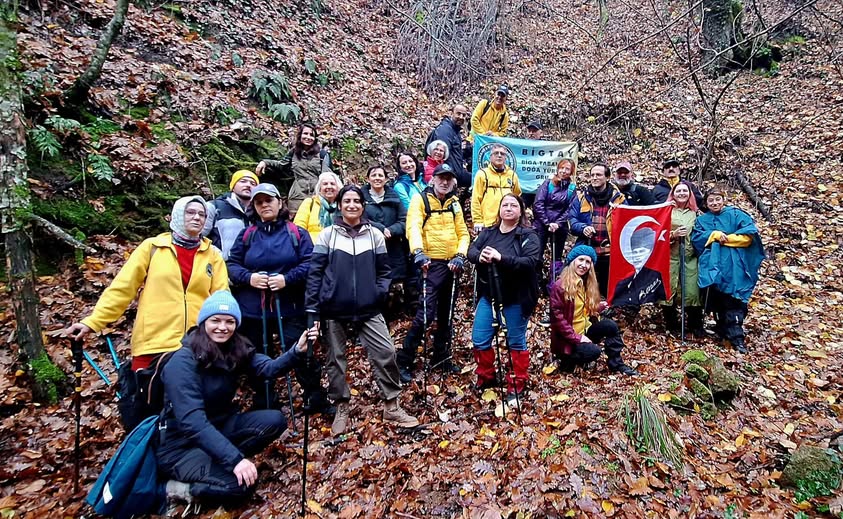 14 Aralık Pazar. Son güzden karakışa girdik. Temennimiz bol yağışlı gerçek bir karakış olması. Yoksa yaz gibi geçen karakışlardan sonra sonumuz pek iyi olmayacak gibi. Tutum, Yatırım ve Türk Malları Haftası aynı zamanda Yoksullarla Dayanışma Haftası. 15 Aralık yani yarın Uluslararası Çay Günü imiş. Çayı vazgeçilmez görenlere kutlu olsun. Farklı mesleklerden farklı yaş gruplarından aynı amaçla bir araya gelmiş yürüyüş grubumuz BİGTAY rotayı Kapanbeli Köyü'ne çevirdi. Meteoroloji bültenine göre hava açıktı. Yağmur gözükmüyordu. Hazırlandık evden dışarı çıktığımda havanın kapalı hafif çisenti halinde yağmurlu olduğunu fark ediyorum. Sırt çantamdaki montu üzerime geçirip yürümeye devam ediyorum sokakta. Kapkaranlık gökyüzüne bakıyorum. Ruhum sıkılıyor. Hızlı adımlarla yürüyerek Belediye durağına geliyorum. Arkadaşların yüzü gülüyor. Sabahın köründe sıcacık yatağından kalkıp ayazda bir amaçla gelmiş buraya. Hafta boyunca hayatın sıkıcılığı, iş stresinden bir nebze olsun kurtulabilmenin panzehiri doğa. Araştırmalar, doğada zaman geçirmenin stresi azalttığını, zihinsel rahatlama sağladığını ve kaygı bozukluğu, depresyon riskini düşürdüğünü gösteriyor. Doğanın huzur ve sakinlik veren atmosferi, ruh halini iyileştirirken zihnimizi yeniden tazelik ve enerji ile dolduruyor. Neşe içerisinde aracımıza biniyor Kocabaş köprüsünden geçerek Çan caddesinden ilerliyoruz. Alişdede Caminin önünden ve Orman İşletme Müdürlüğü durağından binenlerle birlikte aracımız doluyor. Çan yoluna çıkıp Çan'a doğru yönümüz. Bülbülovası'ndan geçiyoruz. Eybekli ve Ovacık kavşaklarını geride bırakarak Kapanbelen kavşağından sağa döndük. Hemen köyün içine girdik. Yola yakın olan yerleşim asıl Tepe üzerinde. Aşağı köyün çevresindeki arazinin mevkisi Tuzluk olarak geçiyor kaynaklarda. Evlerin yapıldığı alan ise Karabalçık. Köyün kenarından geçen yoldan yukarı köye tırmanıyoruz. Sağ tarafımızda Şehitler Çeşmesi var. Suyunun şifalı olduğundan bahsediliyor. Aşağı köyün bulunduğu alanın denizden yüksekliği 50 iken caminin bulunduğu alanın yüksekliği 200 metre. Sırt üzerinden ilerleyen yol mezarlığın yanından kıvrılarak sırtın kenarındaki caminin yanında bulunan köy kahvesinin önünde iniyoruz araçtan. Hava hala puslu ve karanlık. Kahveci çayı demlemiş bizi bekler. Muhtar Hasan Elmaz bizi karşılıyor. Hepimiz sıcacık kahve içinde maşalara dağılıyoruz. Kahvenin bahçesinden manzara muhteşem. Biga'ya doğru bakıyoruz. Ovacık, Eybekli karşımızda. Kocabaş vadisinin ufkunda Biga'yı görebiliyoruz. Sağ taraftan Yeşilköy, Elmalı, Ta uzaklarda Kaynarca görülebiliyor. Rivayetlere göre eşkıyalığın yoğun olduğu yıllarda burası karakol gibi imiş. Biga'dan Yenice'den gelenler mecbur bu boğazdan geçerlermiş. Kaynaklara göre Kapanbelen 1869 yılında Pomak aileler tarafından kurulmuş. Muhteşem bir manzarası olan köyden göçten dolayı nüfus epeyce azalmış. Köyün içinde yaşamı biten epeyce ev var. Daha önce de gelmiştik yürümekiçin Kapanbeli'ne. O zaman köyün alt kısmından Çan yoluna paralel giden orman yollarından ilerleyerek Katrancıya yürümüştük. Çaylarımızı içip kahvaltımızı yaptıktan sonra 100 metre kadar tırmanış olduğundan araçla tırmanmayı tercih ederek tekrar araca biniyoruz. Bu kez farklı bir rotadan doğayı içimize dolduracağız. Hava hafif yağışlı. Önceden de biraz yağış düştüğü yerlerden belli. Toprak yol kaygan. Fazla zorlamadan araçtan inip yürüyüşe başlıyoruz. Ağaçlık alanlardaki patikalara dalıyoruz. Ağaçların yaprakları dökülerek patikayı tamamen örtmüş. Ağaçlara bakmadan yere düşen yapraklardan hangi ağaçların olduğunu görebiliyoruz. Tokat mevkinden geçip tarla içerisinden zikzaklar çizerek Lalebiten Tepesine ulaşıyoruz. Önümüze çıkan yoldan sola dönerek yürüyoruz. Yol dosdoğru gidildiğinde Dikmen'e kadar gidiyor. Patikalardan sonbaharın etkisi ile dökülen ağaç yapraklarının üzerinde yumuşak yumuşak basarken sırt üstündeki yol yağan yağışın etkisi ile biraz çamurdu. Yol üzerindeki izlerden yoğun bir araç trafiği olduğu belli idi. Yol kenarlarından atların ve küçük çalıların üzerinden ilerlemeye çalışarak çamura girmemeye gayret ediyoruz. Hava sisli ama görüş uzaklığı etrafı görmemizi engellemeiyor. Yol kenarında iyice olgunlaşan kocayemişleri iştahla ağzımıza atıyoruz. Anında eriyip kayboluyor ağzımızda. Genç meşe ormanlarının içinden geçen orman yolu bir süre sonra çatallanıyor. Soldaki yolda ilerleyeceğiz. Sağa gidersek dikmen yoluna çıkıyoruz. Girdiğimiz orman yolu pek kullanılmadığı yol üzerinde biriken sararmış yapraklardan belli. Doğanın verdiği mutluluk yüzlerden okunuyor. Ormanın içinde olmak, doğayla temas etmek anlamına gelen, adeta bir ekoterapi, diğer bir deyişle doğanın terapisi olan orman banyosunun tam ortasındayız. Dağlar gününü geçirdiğimiz bu günlerde dağ olmasa da baya yüksekteyiz Biga'ya göre. Geniş sararmış yaprakları ile ıhlamur ağaçları arada bir gözümüzden kaçmıyor. Sararmış yaprakları inatla yere düşmek istemiyor sanki. Meşe ağaçlarının yaprakları epeyce dökülmüş. Gürgen yaprakları biraz dökülse de ıhlamur gibi hala çıkarmak istemiyor ilkbaharda giydiği sonbaharın etkisi ile eskiyen sararan elbisesini. Sislerin arasında sararan yaprakların altında dökülen yapraklara basarak keyifle yürüyoruz Lalebiten Tepesinden aşağı doğru giden Domuzdamı deresinin paralelinden. Yan derelerden dolayı zaman zaman zikzak çizen orman yolunda yürürken domuz damı deresine inmenin yolunu buluyoruz. Önümüze çıkan bir yıllar önce yapıldığı uzun zamandır kullan