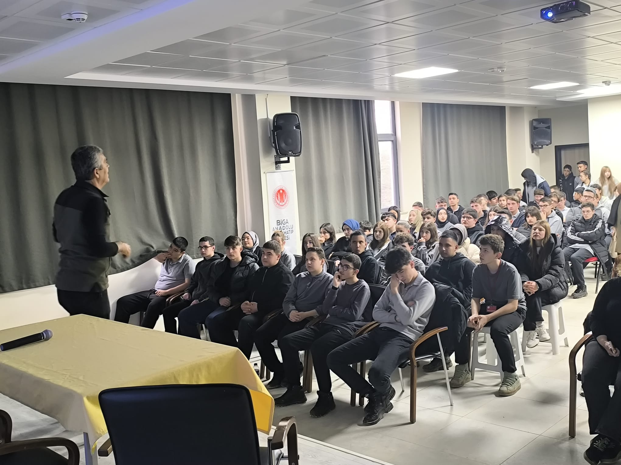 Çanakkale Orman Bölge Müdürlüğü, geleceğin koruyucuları olan öğrencilerle buluşmaya devam ediyor. Orman Genel Müdürlüğünün talimatları doğrultusunda başlatılan "Köklerden Geleceğe Nefes" iş birliği protokolü kapsamında, Biga'da anlamlı eğitimler veriliyor. Orman Genel Müdürlüğünce hayata geçirilen protokol çerçevesinde düzenlenen “Yeşil Vatan Benim Okulum, Geleceğe Çare” etkinliği kapsamında Biga Orman İşletme Müdürlüğü Mühendislerince tüm okullarda eğitim veriliyor. Biga Kadastro ve Mülkiyet Şefi ve Toprak İlmi Ekoloji Dr. Muhammet Akkaya tarafından, Biga Anadolu İmam Hatip Lisesi öğrencilerine, ormanların korunması, orman yangınlarına karşı alınacak tedbirler, yanan alanların rehabilitasyonu, su kaynaklarının tasarruflu ve yerinde kullanımı hakkında bilgiler verildi. Biga Anadolu İmam Hatip Lisesi Müdürü Recep Topal, eğitim sonunda Akkaya'ya teşekkür etti.