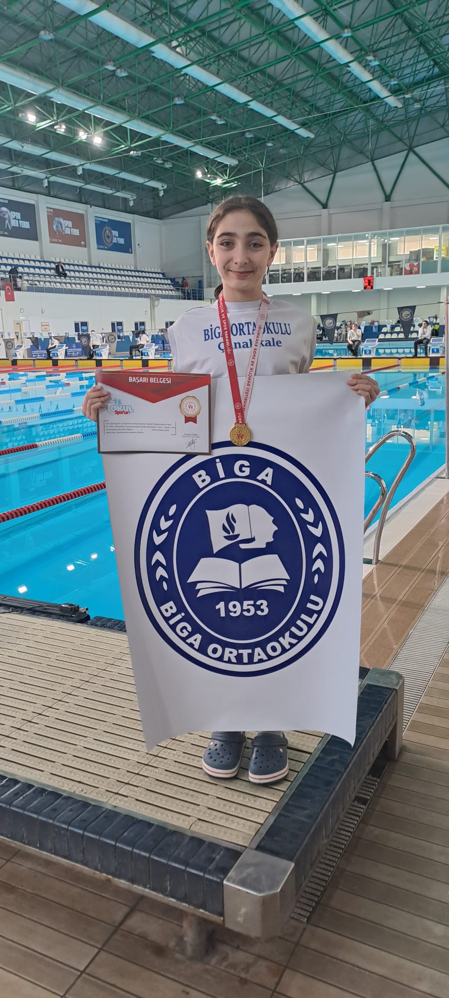 Biga Ortaokulu öğrencisi Melek Gülce Çelik, okul sporları kapsamında İstanbul’da düzenlenen yüzme bölge müsabakalarında bölge birincisi oldu. Biga Ortaokulu öğrencisi 6.sınıf öğrencisi genç yüzücü, 50 metre sırtüstü yarışlarında birinci, 100 metre sırtüstü yarışında ise bölge ikincisi olarak önemli bir başarıya imza attı. Bu anlamlı başarıda emeği geçen Yüzme Antrenörü Toprak Akkaya ve ailesini tebrik eden, okul yönetimi öğrencisini tebrik ederek başarılarının devamını diledi.