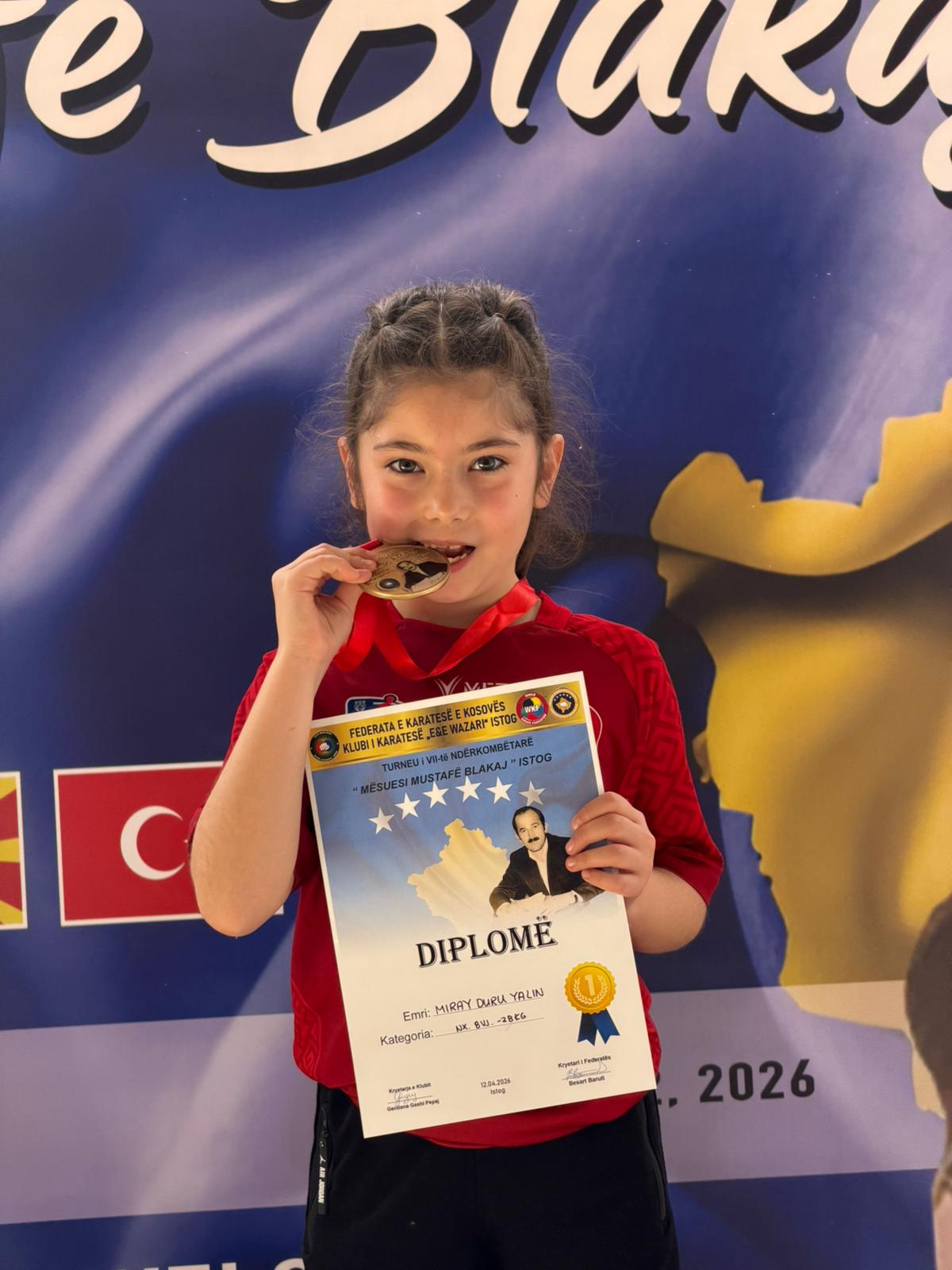 Kosova’nın İstog kentinde 12 Nisan 2026 tarihinde düzenlenen Uluslararası Kosova Karate Şampiyonasında mücadele eden Biga Geçilmez Spor Kulübü sporcuları, elde ettikleri derecelerle ilçeye büyük gurur yaşattı. Türkiye, Kosova, Arnavutluk, Kuzey Makedonya ve Sırbistan’dan çok sayıda sporcunun katılım sağladığı organizasyonda Biga temsilcileri, üstün performanslarıyla dikkat çekerek turnuvaya damga vurdu. Şampiyonada mücadele eden sporculardan Asil Ayaz, tüm rakiplerini mağlup ederek kendi kategorisinde şampiyon oldu ve altın madalya kazandı. Miray Duru Yalın ile Yiğithan Sevilir de gösterdikleri başarılı performanslarla şampiyon olarak kürsünün zirvesine çıktı. Turnuvada Zeynep Tunçel ikinci olarak gümüş madalyanın sahibi olurken, Asya Çakır, Özgür Bulut Tüzüner ve Salih Kutay Ödemiş ise üçüncülük elde ederek bronz madalya kazandı. Uluslararası düzeyde yoğun katılımla gerçekleştirilen şampiyonada Biga Geçilmez Spor Kulübü’nün toplamda 3 altın, 1 gümüş ve 3 bronz madalya kazanması, hem Biga’da hem de karate camiasında büyük takdir topladı. Kulüp antrenörleri, elde edilen başarıların disiplinli çalışma ve sistemli antrenman programlarının sonucu olduğunu belirtirken, sporcuların uluslararası arenada Türk bayrağını dalgalandırmaya devam edeceğini ifade etti. Biga Geçilmez Spor Kulübü’nün son yıllarda elde ettiği ulusal ve uluslararası başarılarla bölgenin en önemli spor kulüplerinden biri haline geldiği bir kez daha gözler önüne serildi.
