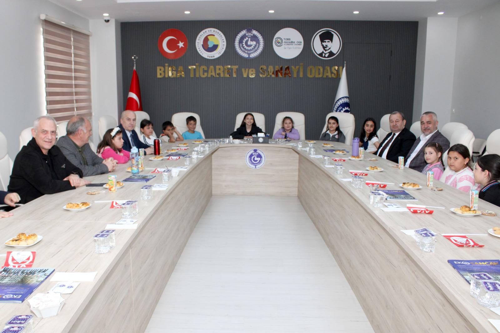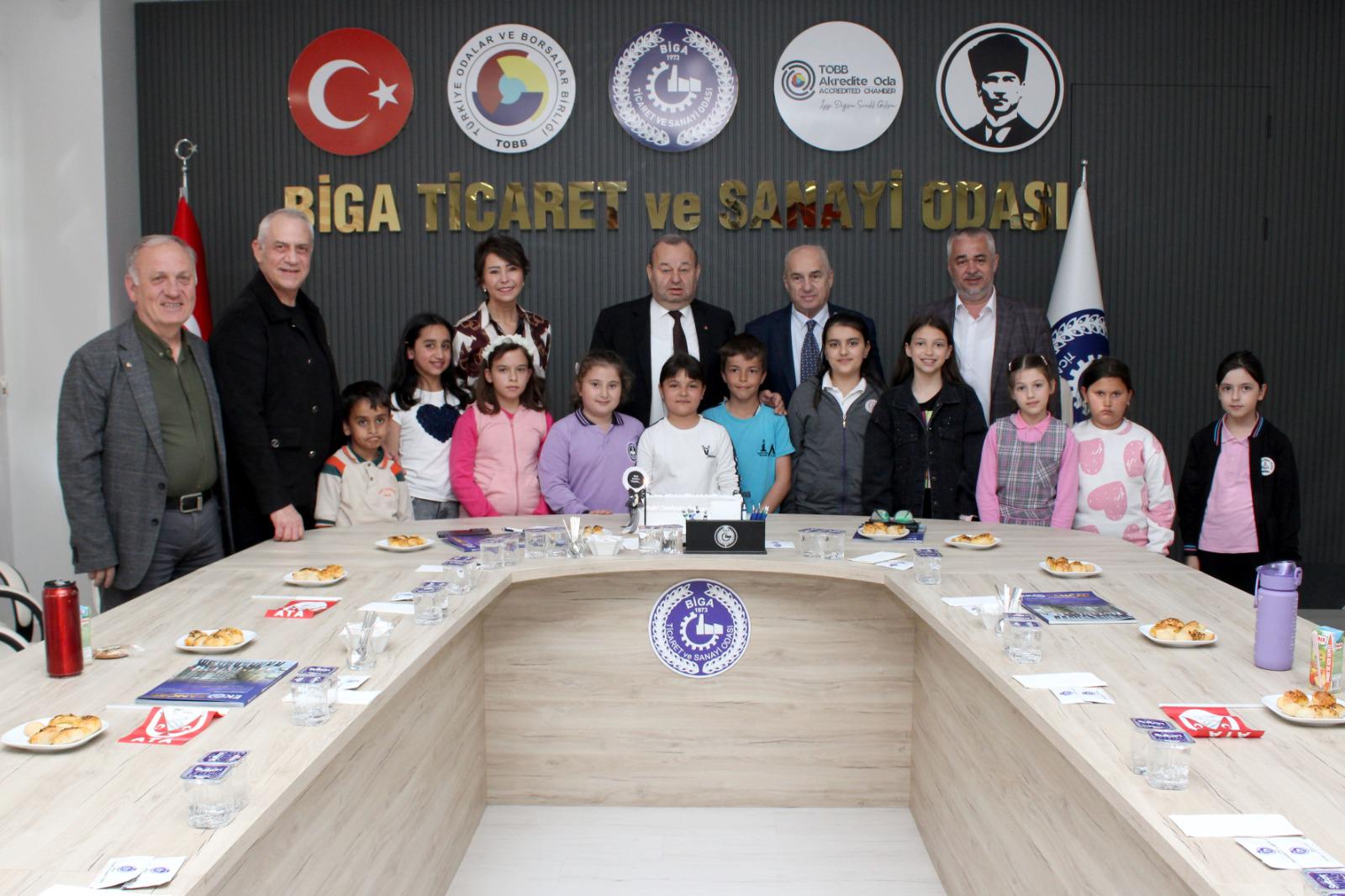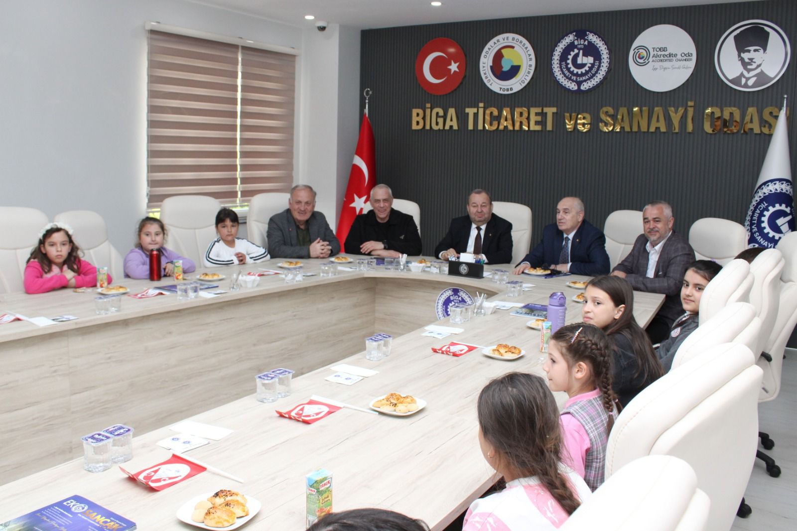 23 Nisan Ulusal Egemenlik ve Çocuk Bayramı etkinlikleri kapsamında Biga’da öğrenim gören başarılı öğrenciler, Biga Ticaret ve Sanayi Odası’nı ziyaret ederek yönetimi bir günlüğüne devraldı. Biga Ticaret ve Sanayi Odası (TSO) Yönetim Kurulu Başkanı Şadan Doğan, Meclis Başkanı Hüseyin Erdoğan ve yönetim kurulu üyeleriyle bir araya gelen minik öğrenciler; başkanlık ve yönetim kurulu koltuklarına oturarak sembolik olarak görev yaptılar. Kendilerini tanıtan ve gelecek hedeflerinden bahseden küçük başkanlar, Biga’daki eğitim imkanları ve gençlere yönelik projeler hakkında taleplerini dile getirerek yönetimle samimi bir sohbet gerçekleştirdiler. Ziyaret sırasında ayrıca sürpriz bir kutlama yapılarak, Yönetim Kurulu Başkanı Şadan Doğan’ın doğum günü dolayısıyla pasta kesildi. BAŞKAN DOĞAN’DAN BAĞIMSIZLIK VE GELECEK VURGUSU Biga TSO Yönetim Kurulu Başkanı Şadan Doğan, günün anlam ve önemine binaen şu mesajı paylaştı: “Cumhuriyetimizin kurucusu Gazi Mustafa Kemal Atatürk’ün 'Milletin bağımsızlığını yine milletin azim ve kararlılığı kurtaracaktır' ilkesiyle temellerini attığı Türkiye Büyük Millet Meclisi’nin açılışının 106. yıl dönümünü ve 23 Nisan Ulusal Egemenlik ve Çocuk Bayramı’nı büyük bir gururla kutluyoruz. TBMM’nin açılışı, sadece bir kurumun faaliyete geçmesi değil, egemenliğin kayıtsız şartsız millete geçtiğinin ve bağımsızlık meşalesinin tüm Anadolu’da sonsuza dek yanacağının ilanıdır. Atatürk’ün bu önemli günü bayram olarak armağan ettiği çocuklarımız; aydınlık geleceğimizin teminatı, yarınlarımızın umududur. Biga Ticaret ve Sanayi Odası olarak bizler, çocuklarımıza daha güçlü, daha müreffeh ve ekonomik anlamda kalkınmış bir Biga ile güçlü bir Türkiye bırakmak için azimle çalışmaya devam ediyoruz. Geleceğin iş insanları, yöneticileri ve sanatçıları olacak evlatlarımızın, milli değerlerine bağlı, vizyoner ve donanımlı bireyler olarak yetişmesi en büyük önceliğimizdir. Bu duygu ve düşüncelerle; başta Gazi Mustafa Kemal Atatürk ve silah arkadaşları olmak üzere, vatanımız uğruna canlarını feda eden aziz şehitlerimizi rahmet ve minnetle anıyor; tüm çocuklarımızın ve halkımızın 23 Nisan Ulusal Egemenlik ve Çocuk Bayramı’nı en içten dileklerimle kutluyorum.”