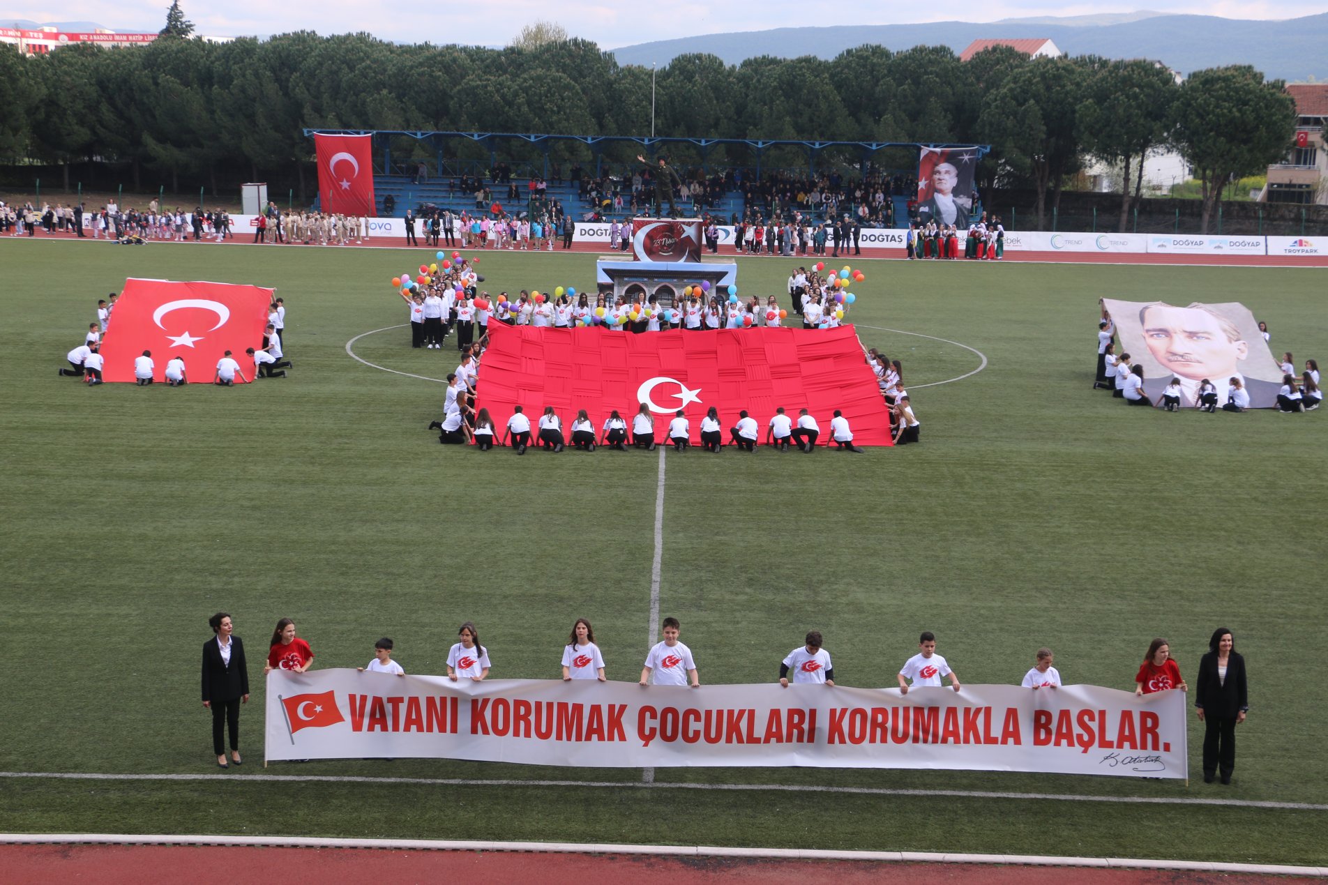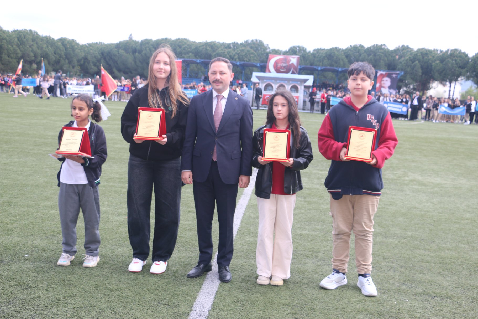 Biga´daki törenler Cumhuriyet Meydanındaki Atatürk anıtına çelenk sunulması, saygı duruşunda bulunulması ve İstiklal Marşının okunmasıyla başladı.İlyas Bayram Stadyumunda devam eden törenlere Kaymakam Ercan Kayabaşı, Belediye Başkanı Alper Şen, İlçe Milli Eğitim Müdürü Muhammet Nazlıcan, okul müdürleri, öğrenciler ve vatandaşlar katıldı. İlkokul öğrencileri arasında düzenlenen yarışmalarda dereceye giren öğrencilere ödülleri verildi.Bosna Hersek folklor ekibi gösterilerini sundu. Biga Ortaokulu öğrencilerinin hazırladığı egemenliğin mührü şanlı bayrağım adlı final gösterileri ile tören, bayrak, flama geçiş töreniyle sona erdi.