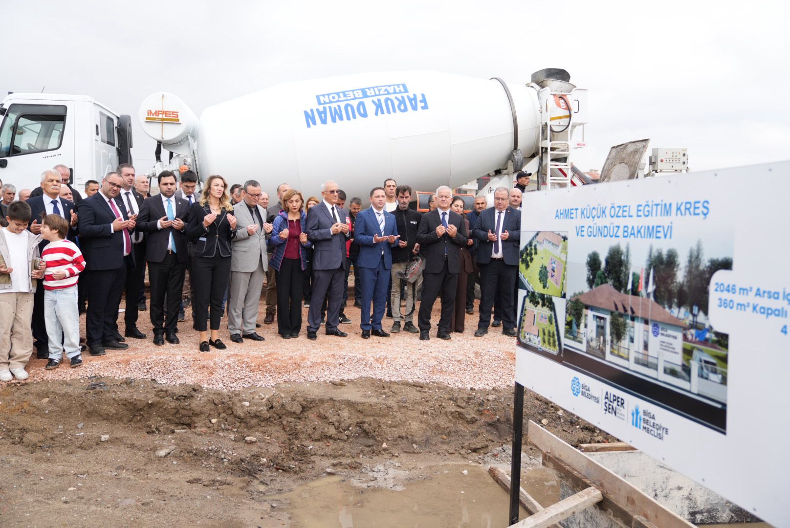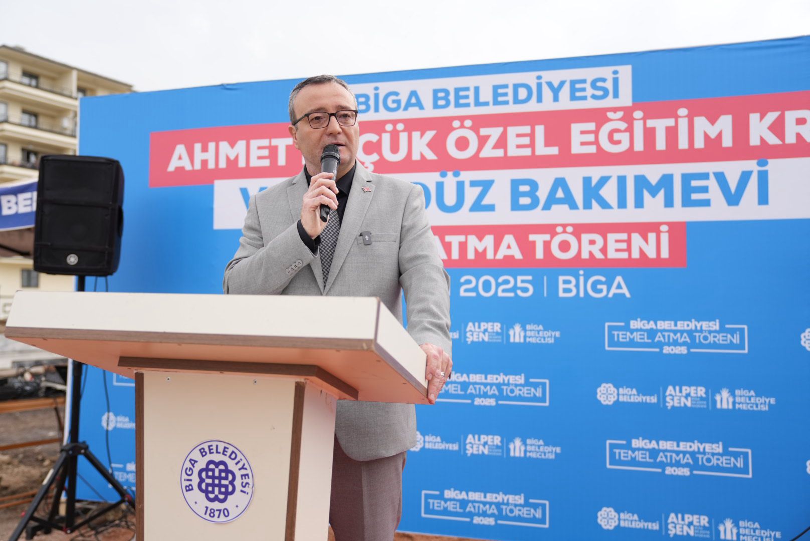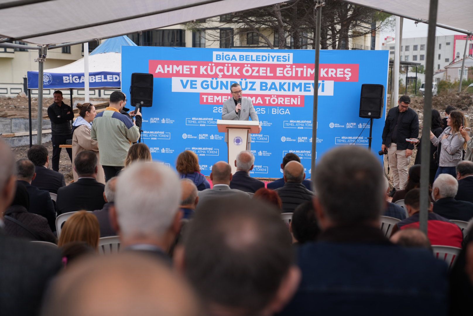 Biga´da Ahmet Küçük Özel Eğitim ve Gündüz Bakımevinin temeli törenle atıldı. Şirintepe mahallesi Şehit Uzman Onbaşı Ulaş Açıkgöz caddesi üzerinde düzenlenen törene, CHP Çanakkale İsmet Güneşhan, Biga Kaymakamı Ercan Kayabaşı, Biga Belediye Başkanı Alper Şen, CHP İl Genel Meclis üyeleri, Belediye Meclis üyeleri, Siyasi Parti Temsilcileri, Oda Başkanları ve vatandaşlar katıldı. Törende konuşan Başkan Şen: " bugün sadece bir binanın değil bir anlayışın bir değerin temelini atıyoruz. 2 bin metrekarelik bir alanda yükselecek bir inşaat 4 sınıftan ve 360 metrekare kapalı alandan oluşacak özel oyun parkı ile birlikte. Cumhuriyetin her çocuk eşittir anlayışının somut karşılığı olarak Biga'mıza ve Bigalılara hayırlı olsun. Sayın Ahmet Küçük'ün isminin taşıması da projeye ayrı bir anlam katıyor. Biga'da doğmuş bu topraklarda büyümüş Meclisimizde üç dönem görev yapmış ama asıl gönüllere izini Biga'da kazımıştır. Adı bundan böyle çocuk kahkahaları ve neşesi ile yankılanan bir eğitim kurumunda daimi olacaktır. Kendisine ve değerli eşi Öznur hanıma Biga adına yürekten şükranlarımızı sunuyoruz" dedi. Siyasetçi Ahmet Küçük ise Biga'ya biriken borcunu ödemek için rüyalarında gördüğü Biga'ya geri döndüğünü dile getirdi. Küçük şunları söyledi: "Biga'ya nasıl faydalı olabilirim diye düşünürken Belediye Başkanımıza duygularımı anlattım. Özel çocuklarımıza borcumuz var hep beraber sorunlarını çözelim dediğinde çok sevindim. Özel çocuklarımıza hizmet verecek olacak bu yuvanın bugün temelini atıyoruz. Burada annelerin hayallerini inşa edeceğiz. Onların güzel geleceklerini inşa edeceğiz. Özel çocuklarını buraya bırakıp anneler işlerine gidecekler"