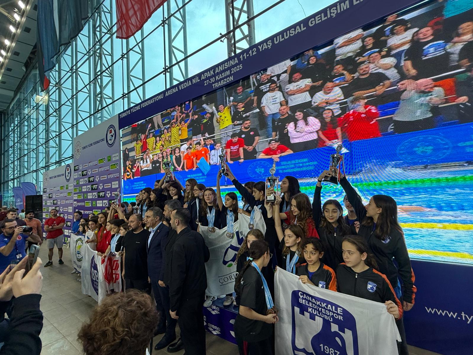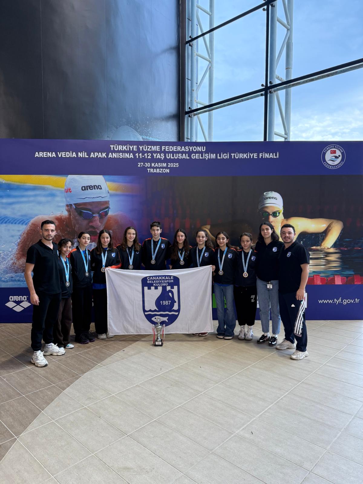 Çanakkale Belediyespor Kulübü Trabzon’da düzenlenen 11–12 Yaş Ulusal Gelişim Ligi Türkiye Finaline 9 sporcu ile katılarak Türkiye Finallerinden kupa ile dönmenin gururunu yaşadı. Türkiye’nin dört bir yanından 236 kulüp ve 1172 sporcunun katıldığı bu büyük şampiyonada, Çanakkale Belediyespor Kulübü yüzme takımı güçlü performansıyla dikkat çekti. Bireysel olarak Melek Gülce Çelik, 100m ve 50m sırtüstü yarışlarında Türkiye üçüncüsü olarak kulübe madalya kazandırdı. Sporcuları dereceleri Melek Gülce Çelik (2014) * 50m Sırtüstü – 34.31 (TR 3.) * 100m Sırtüstü – 1:14.46 (TR 3.) * 200m Sırtüstü – 2:40.25 (TR 5.) * 200m Karışık – 2:48.64 Defne Bahar (2013) * 50m Serbest – 29.49 (TR 8.) * 100m Serbest – 1:05.37 * 50m Kelebek – 32.07 * 200m Karışık – 2:42.01 Ezgi Şentuna (2014) * 100m Serbest – 1:07.76 * 50m Kurbağalama – 39.07 * 100m Kurbağalama – 1:24.75 (TR 9.) * 200m Kurbağalama – 3:03.44 Ecem Gülce Yılmaz (2014) * 50m Serbest – 32.21 * 100m Serbest – 1:08.27 * 200m Serbest – 2:31.63 * 400m Serbest – 5:31.63 Eda Nur Eren (2014) * 200m Sırtüstü – 2:54.96 * 50m Kelebek – 34.30 * 100m Kelebek – 1:17.43 * 200m Karışık – 2:52.00 Eda Özrenk (2014) * 50m Serbest – 31.79 * 100m Serbest – 1:11.19 * 50m Kurbağalama – 40.45 * 100m Kurbağalama – 1:35.09 Elif Özalp (2013) * 50m Serbest – 30.55 * 100m Serbest – 1:05.69 * 50m Sırtüstü – 35.22 * 50m Kelebek – 34.96 Yağız Şentuna (2013) * 50m Serbest – 29.41 * 100m Serbest – 1:05.00 * 200m Serbest – 2:20.07 Zeynep Telli (2014) * 100m Serbest – 1:10.07 * 200m Serbest – 2:37.41 * 400m Serbest – 5:17.49 * 200m Karışık – 3:02.27
