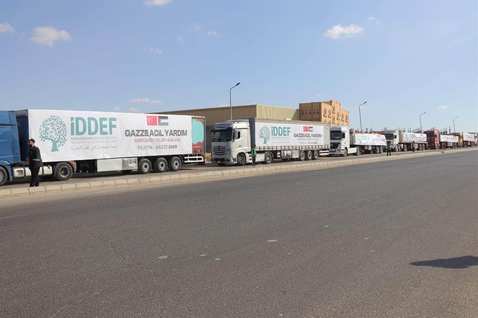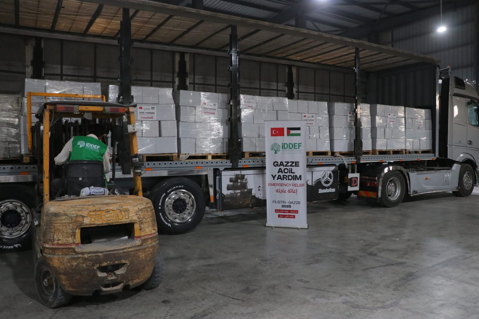 İDDEF, kış şartlarında hayatta kalmaya çalışan Gazze halkına umut olmak için gıda, hijyen, un ve battaniye yardımlarından oluşan tırları Refah Sınır Kapısı üzerinden bölgeye sevk etti. 7 Ekim 2023’ten bu yana Gazze’yi hiçbir zaman yalnız bırakmayan İnsana Değer Veren Dernekler Federasyonu (İDDEF), ağırlaşan kış şartlarıyla birlikte bölgedeki insani yardım çalışmalarını daha da yoğunlaştırdı. Her hafta bölgeye tırlar sevk eden İDDEF, son olarak Gazze’deki ailelere ulaştırılmak üzere 8 tır dolusu gıda kolisi, hijyen malzemesi, battaniye ve un gönderdi. İDDEF Biga Temsilciliği Samet Tunçer de bölgeye giderek tırların yükleme, kontrol ve sevkini sağladı. İDDEF’ten yapılan açıklamada, Mısır’ın başkenti Kahire’de bulunan lojistik depoda Gazzeli aileler için tek tek hazırlanan yardım paketlerinin tırlara yüklenerek Refah Sınır Kapısı üzerinden Gazze’ye gönderildiği ifade edildi. Açıklamada, şu ifadelere yer verildi: “Gazzeli kardeşlerimiz için hazırladığımız gıda kolilerini ve temel ihtiyaç malzemelerini tırlarımızla Refah Sınır Kapısı’ndan Gazze’ye ulaştırıyoruz. Her bir tırın kasasında bir annenin duası, bir çocuğun umudu, bir ailenin yeniden hayata tutunma mücadelesi var. Gıda ve un yardımlarımız açlığı hafifletecek, hijyen setleri hastalıkların önüne geçecek, battaniyeler ve barınma malzemeleri ise soğuk gecelerde sığınak olacak. Gazze’ye yardım eden tüm hayırseverlerimize teşekkür ederiz.” İDDEF, kışın etkisini artırdığı Gazze’de ailelerin soğuk, açlık ve hastalıkla mücadele ettiğini vurgulayarak, yardım çalışmalarının kesintisiz devam edeceğini belirtti. Hayırseverler, Gazze’deki mağdur ailelere destek olmak için www.iddef.org üzerinden, ilgili hesap numaralarına FAST/EFT/havale yoluyla, Türkiye’nin çeşitli il ve ilçelerindeki temsilciliklere başvurarak veya 0212 621 00 65 numaralı çağrı merkezini arayarak bağışta bulunabiliyor.