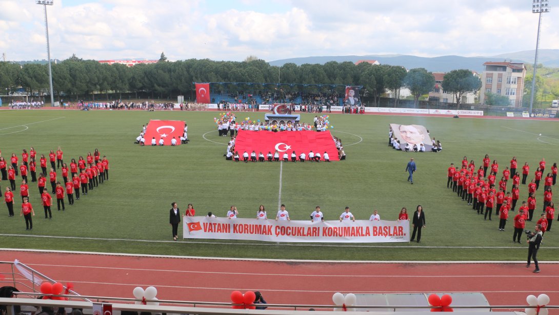 Biga´daki törenler Cumhuriyet Meydanındaki Atatürk anıtına çelenk sunulması, saygı duruşunda bulunulması ve İstiklal Marşının okunmasıyla başladı.İlyas Bayram Stadyumunda devam eden törenlere Kaymakam Ercan Kayabaşı, Belediye Başkanı Alper Şen, İlçe Milli Eğitim Müdürü Muhammet Nazlıcan, okul müdürleri, öğrenciler ve vatandaşlar katıldı. İlkokul öğrencileri arasında düzenlenen yarışmalarda dereceye giren öğrencilere ödülleri verildi.Bosna Hersek folklor ekibi gösterilerini sundu. Biga Ortaokulu öğrencilerinin hazırladığı egemenliğin mührü şanlı bayrağım adlı final gösterileri ile tören, bayrak, flama geçiş töreniyle sona erdi.